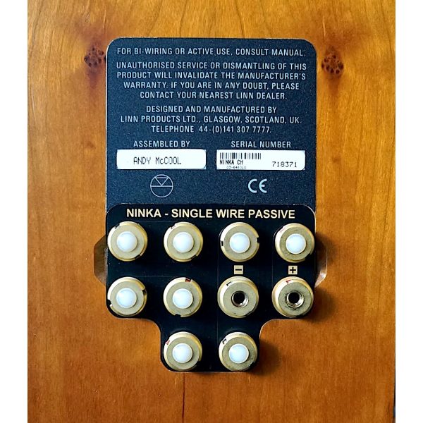 The NINKA can be easily configured as a passive or an active loudspeaker. The input terminals on the rear of the NINKA enable simple, fast configuration either as a single-wired passive loudspeaker; a bi-wired passive loudspeaker; a bi-amped active loudspeaker; or as a triamped active loudspeaker. For passive playback, the NINKA’s inputs connect to the crossover and for active playback additional inputs connect directly to the NINKA’s drive units. Two removable, reversible-link connection boards (patent pending) on the rear of the NINKA identify and configure the appropriate input links for passive or active playback requirements.