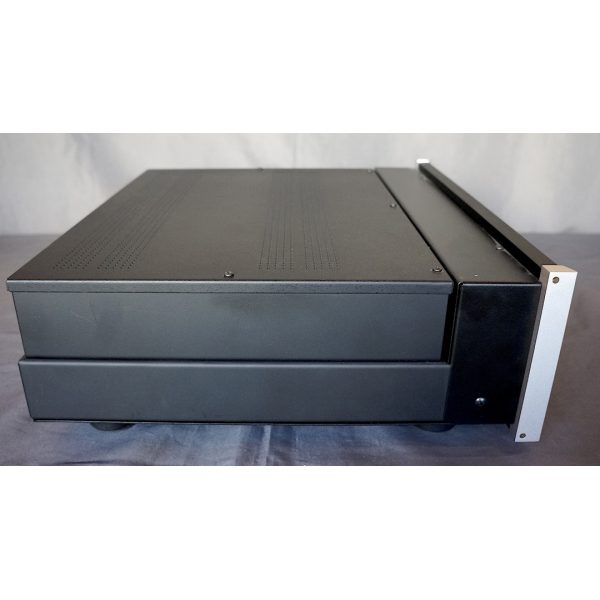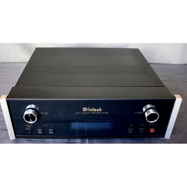 Incorporates classic McIntosh design cues, including a black glass front panel, knobs, illuminated logo and brushed aluminum end caps.