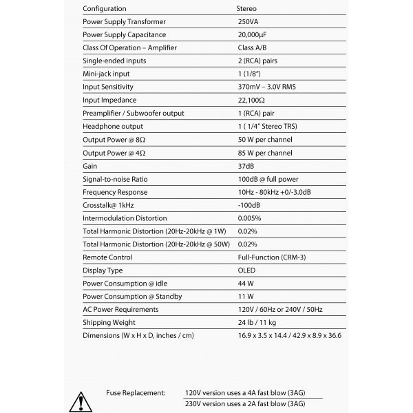 3 line-level inputs including a front-mounted 1/8” mini-jack for personal media players.