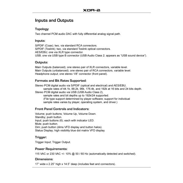 The XDA-2 is an audiophile quality two-channel PCM digital-to-analog converter (DAC). The digitally controlled analog resistor ladder volume control, which doesn’t cause loss of resolution even at low volume levels, also makes the XDA-2 an ideal “digital preamp” for people who have only digital sources. The XDA-2 is the ultimate way to upgrade the soundquality of almost any audio system that includes digital audio sources.