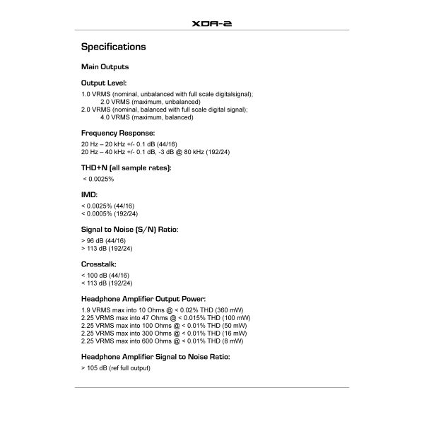 Powers all standard headphones, a low 0.1 ohm output impedance, and a 105 dB signal to noise ratio.
