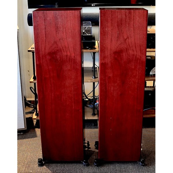 These are in very nice condition! In beautiful premium quality wood veneer rosenut finish.  Original box and packing are NOT included, so THESE ARE LOCAL SALE ONLY. See last image for specs.