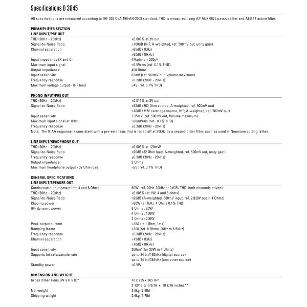 From NAD: The NAD D 3045 is everything a modern amplifier should be; compact, energy efficient, powerful, silent, high-resolution enabled, and packed with cutting edge features like DSD and MQA playback. NAD’s expertise in both digital and analogue engineering is on full display in this flexible and affordable amplifier.