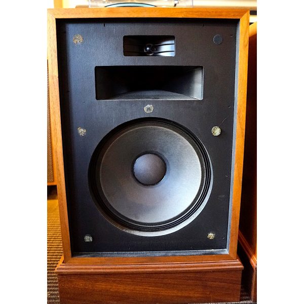 These are in very nice condition and are classics that sound great! In Walnut Finish. Original Box and packing ARE included, so we can ship Note they are 55+ lbs/ each! Color variences are camera artifcats. Include matching bases as shown.