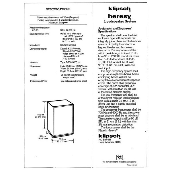 See last two images for original brochure with specs.
