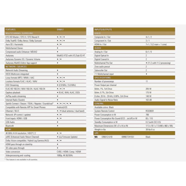Audyssey MultEQ XT32, LFC, Sub EQ HT, Dynamic Volume and Dynamic EQ that delivers the ultimate equalization for your individual room
