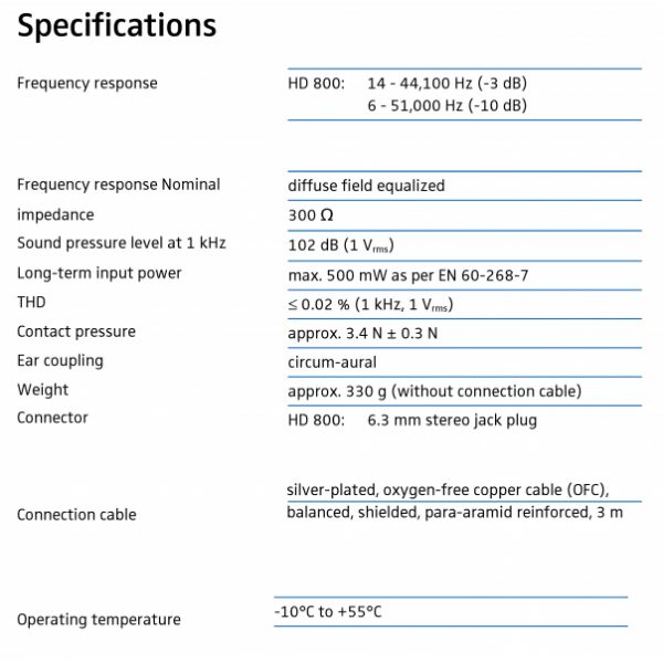 From Sennheiser: A modern classic, Sennheiser’s reference class HD 800 headphones deliver sound that is as natural as possible and true in every detail. Crafted for perfection they are precision-built in Germany from only the finest materials and components. The transducer is encased by stainless steel, while the headband and headphone mounting utilizes the most advanced materials developed in the aerospace industry for high strength with minimal weight.