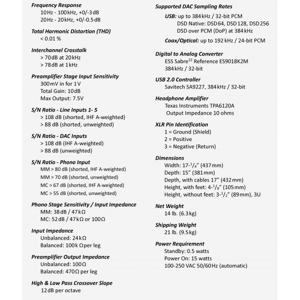 Award Winning 2.1 Channel Preamplifier w/ DAC and Phono input