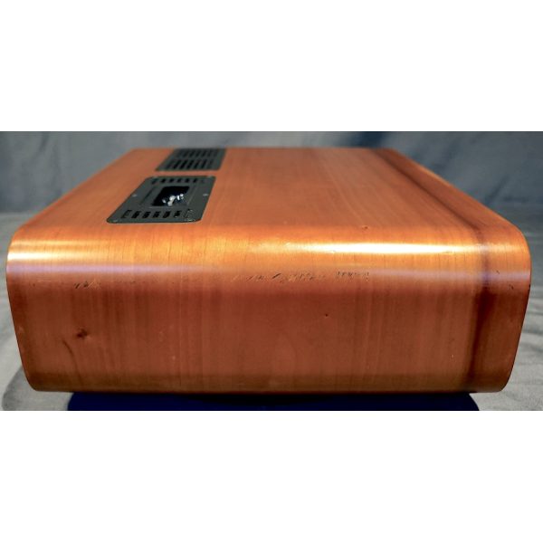 In good condition - note side panel and back panel top edge scratches, but this still works great! Cherry Finish.